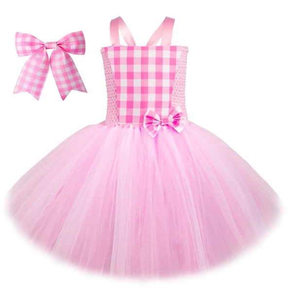 Costume barbie robe tutu vichy rose - déguisement halloween fille
