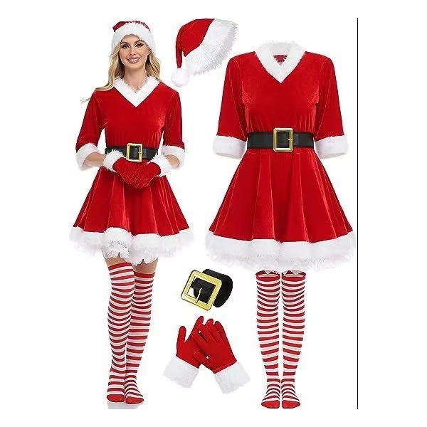 Costume robe mère noël avec gants et bas
