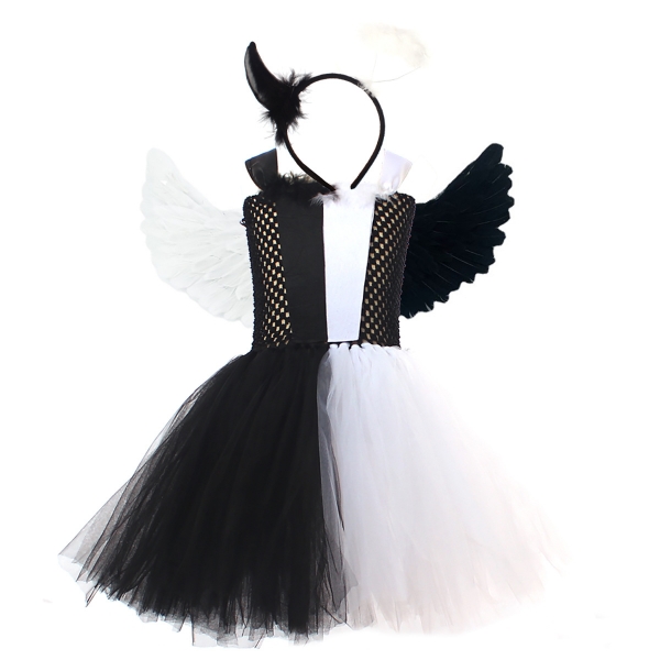 Déguisement mi ange mi démon blanc et noir - costume enfant pour fille
