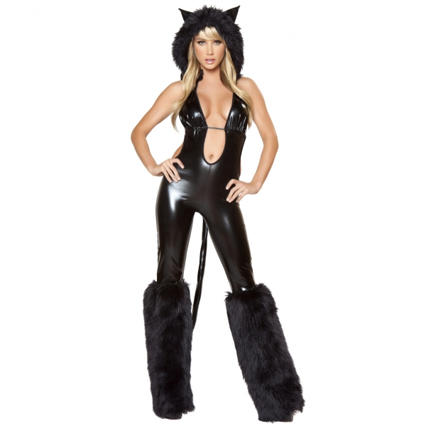 Costume combinaison chat avec jambières - deguisement halloween femme