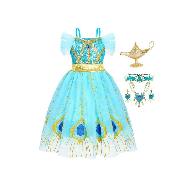 Costume pour fille robe jasmine Aladdin avec la lampe