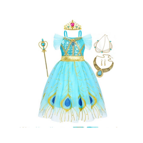 Costume pour fille robe jasmine Aladdin avec accessoires