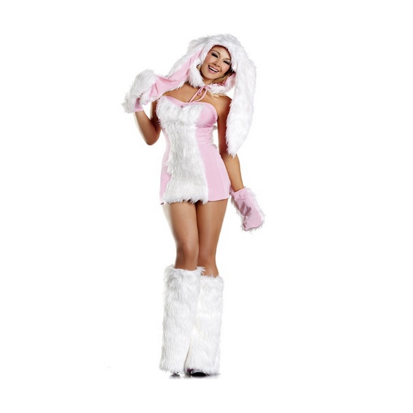 Costume Bunny lapin Playboy avec chapeau, gants et jambières - déguisement femme